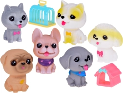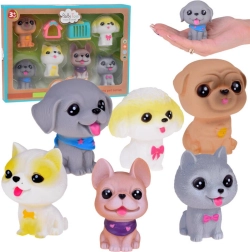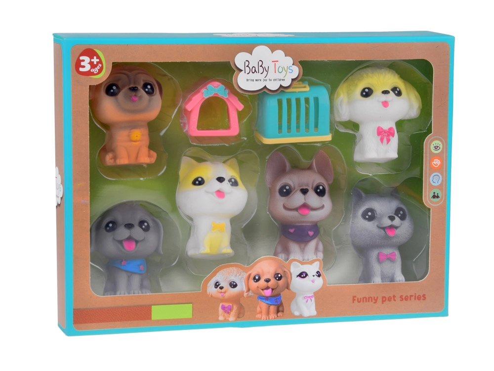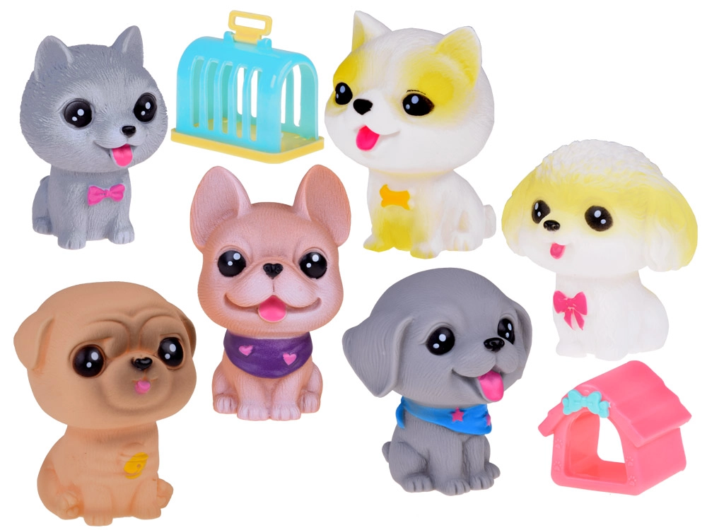 Sešu mīlīgu gumijas sunīšu komplekts ir lielisks papildinājums katram bērnam, kuram patīk dzīvnieki. Tos var izmantot rotaļām suņu salonā, suņu viesnīcā, kucēnu bērnudārzā vai pie veterinārārsta. Pateicoties smalkajam izpildījumam un reālistiskām detaļām, piemēram, lielām actiņām un mīļiem vaibstiem, šīs figūriņas ir neatvairāmas.