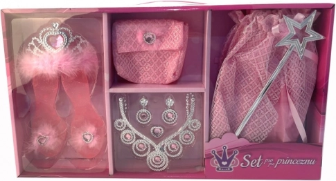 Ieej pasaku pasaulē ar burvīgu komplektu mazajām princesēm! Tajā ir svārki, kurpītes, kroņa, rokassomiņa, burvju nūjiņa un rotaslietas – viss tūlītējai pārvēršanai par princesi un stundām ilgi radošai spēlei.