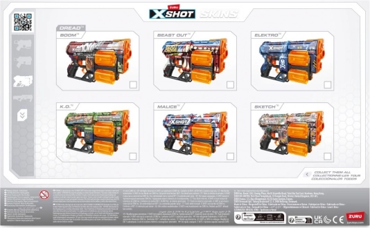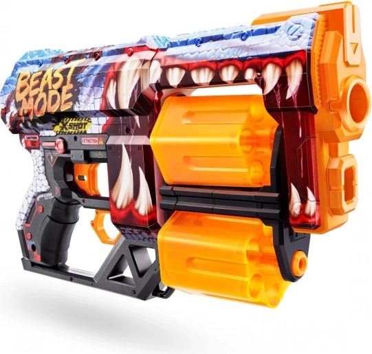 Sagatavojieties adrenalīna pilnām cīņām ar X-SHOT SKINS DREAD blasteri košajā beast mode skinā. Divi neatkarīgi rotējošie cilindri kopā nodrošina 12 ātrus šāvienus – tiklīdz viens ir tukšs, vienkārši pārslēdzieties un turpiniet spēli bez aiztures. Ergonomisks dizains un viegla konstrukcija nodrošina ērtu satvērienu arī ilgākās spēlēs.
