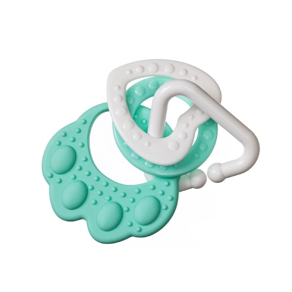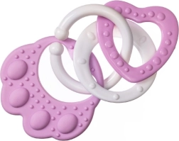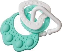 Mūsu graužamais riņķis lāča ķepas formā ir ideāls mazajiem pētniekiem. Īpaši izstrādātas formas bez asām malām garantē drošu lietošanu. Pievienotās plastmasas formas, piemēram, riņķīši, sirsniņas un zvaniņi, nodrošina ne tikai izklaidi, bet arī nepieciešamo atvieglojumu zobu sāpēm.