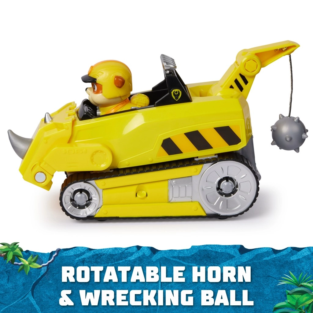Piedzīvojiet dinamiskas glābšanas misijas kopā ar Rubble un viņa pārvēršamo transportlīdzekli no sērijas Paw Patrol: Jungle Rescue. Ar vienu nozīmītes pieskārienu kauss pārvēršas, atklājot deguna ragu kā degunradzim, un, atverot aizmugurējo nodalījumu, var pacelt celtņa strēli ar demolēšanas bumbu, lai ātri noņemtu šķēršļus. Lieliski attīsta bērnu motoriku un iztēli.