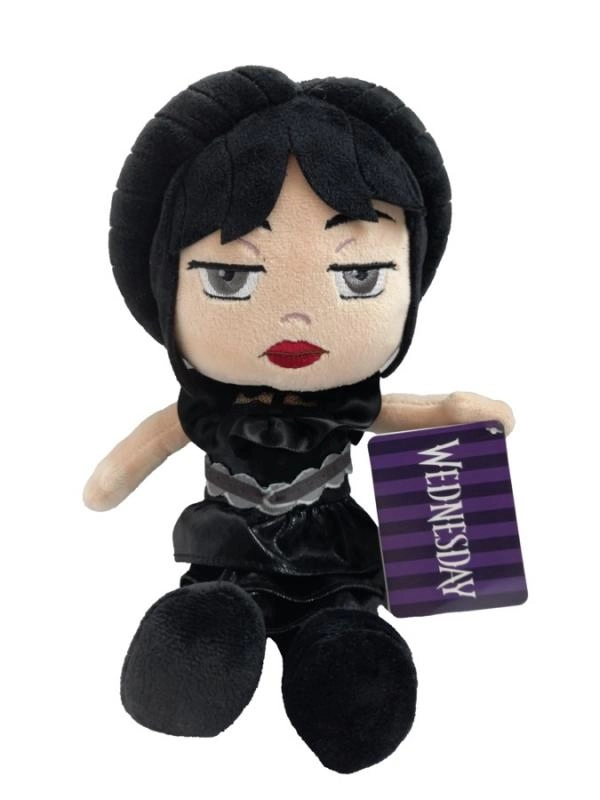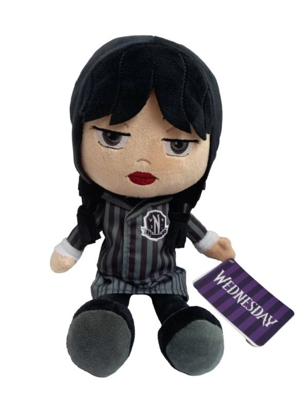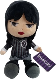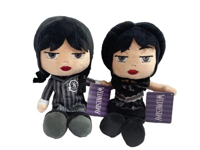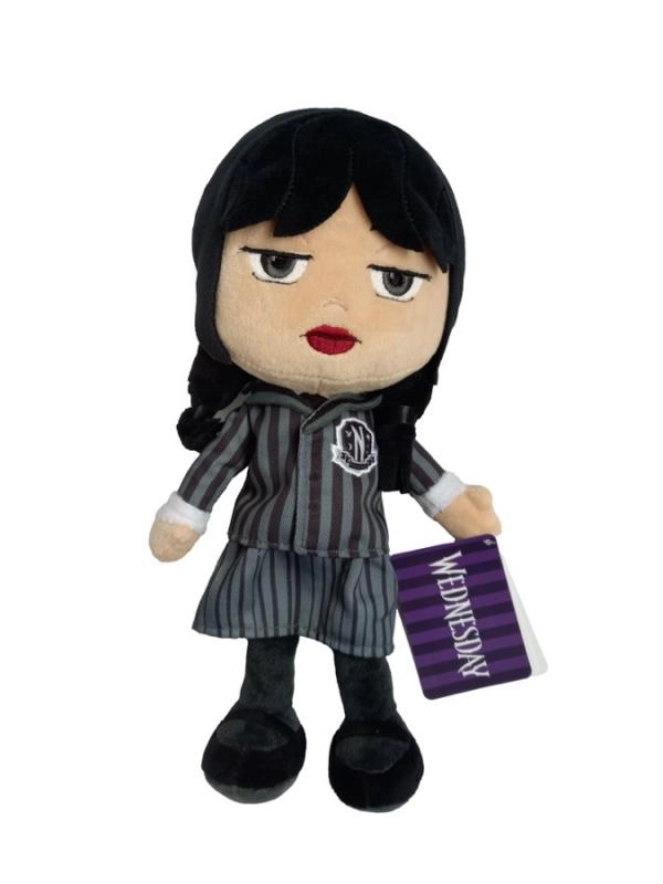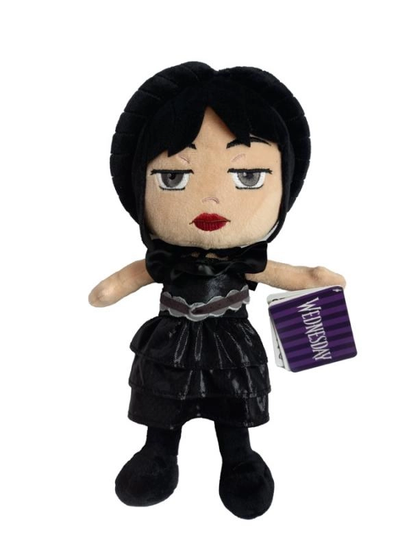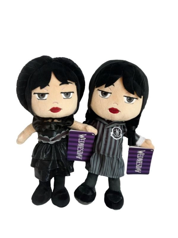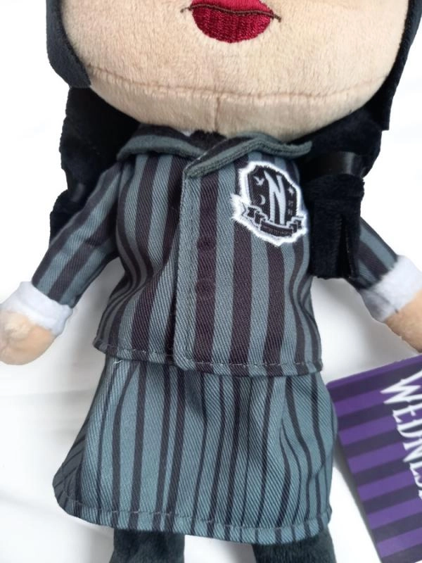 Atklājiet iemīļotā seriāla varones šarmu ar mūsu stilīgo mīksto lelli Wednesday Addams. Šī 32 cm lelle ir rūpīgi veidota divos ikoniskos tērpos: pelēkajā Nevermore skolas formā un ekstravagantās melnās kleitās, kuras viņa valkāja Nevermore Rave'N Dance ballē.