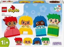 Komplekts LEGO DUPLO Manas sajūtas un emocijas (10415) ir lielisks palīgs, lai mazajiem rotaļīgā veidā tuvinātu dažādas noskaņas un reakcijas. Katrai no 4 figūriņām ir divas atšķirīgas sejas, tāpēc bērni var viegli mainīt izteiksmes un stāstīt savus stāstus. Krāsainās detaļas ar matiem dažādās formās rosina izzināt un attīsta kustību koordināciju.