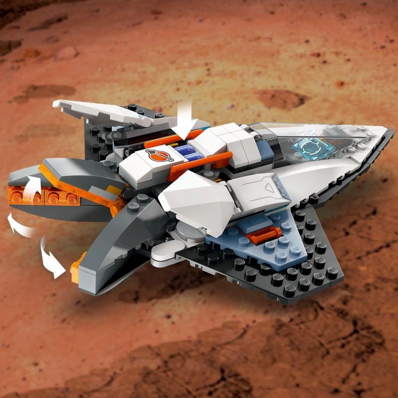 Šis komplekts attīsta fantāziju, apvienojot reālismu un zinātniskās fantastikas elementus: reālistisku transportlīdzekli, detalizētus piederumus un iedvesmojošus tēlus. Lieliski sader ar citām LEGO City kosmosa sērijas komplektiem vēl episkākām misijām.