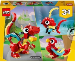 Ļaujiet bērnu fantāzijai pacelties spārnos ar daudzveidīgo LEGO Creator 3 vienā Sarkanā pūķa komplektu. No vienas kastes var izveidot trīs dažādus modeļus un ar katru pārbūvi piedzīvot jaunus piedzīvojumus. Kustīgas ekstremitātes, spārni un galva nodrošina dabisku pozēšanu un stāstu spēlēšanu.