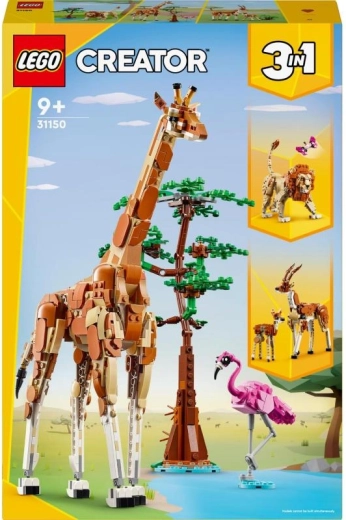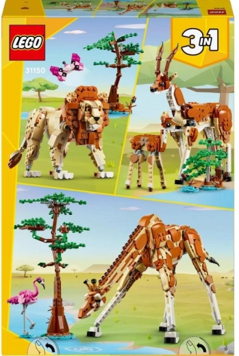 LEGO Creator 3-in-1 safari dzīvnieki sniedz lielisku devu izklaides un radošuma. No viena iepakojuma var uzbūvēt lepnu žirafi ar garu, pozējamu kaklu, mazu koku un mīlīgu flamingo. Kad pienāk laiks pārmaiņām, pārbūvējiet modeli par divām graciozām gazelēm – mammu ar mazuli – vai par cēlu lauvu ar pavadošajiem elementiem.