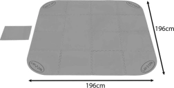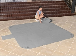 Komplektā ir arī atsevišķs paklājs sūknim, kas nodrošina stabilu un drošu apkures/filtrēšanas iekārtas novietojumu. Ja jūsu burbuļvanna ir lielāka par 196 × 196 cm, vienkārši savienojiet vairākus komplektus, lai iegūtu vajadzīgo aizsargvirsmu.