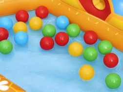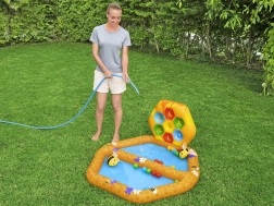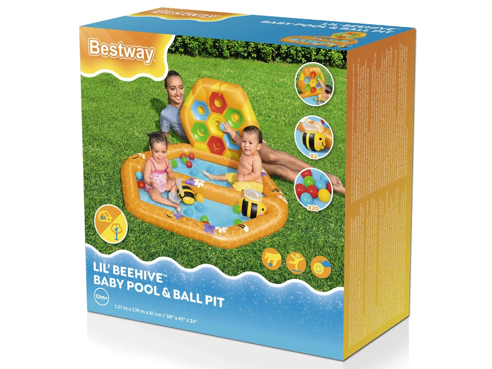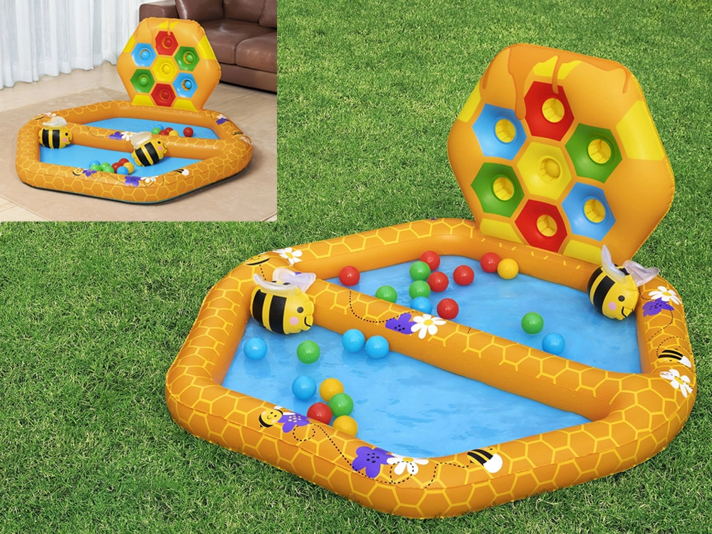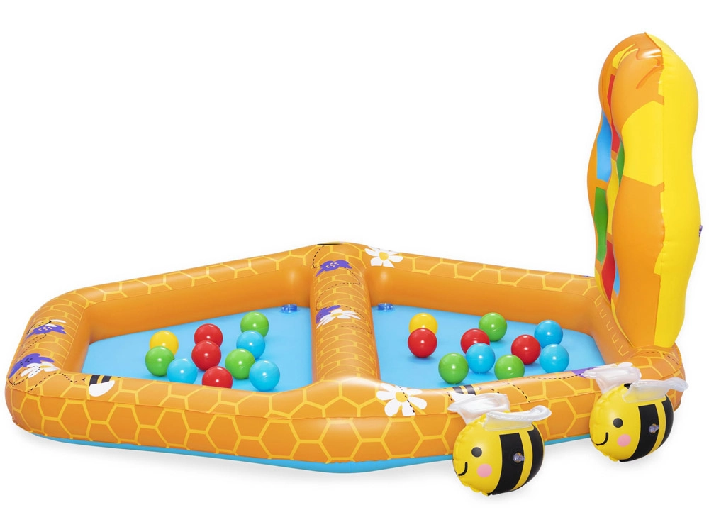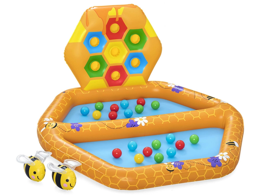 Komplektā ietilpst atsevišķs ar bumbiņām pildāms baseins, divas Puffy Pal rotaļlietas bišu veidolā, divdesmit plastmasas bumbiņas un remonta komplekts. Baseina izmēri: 127 cm x 119 cm x 61 cm.