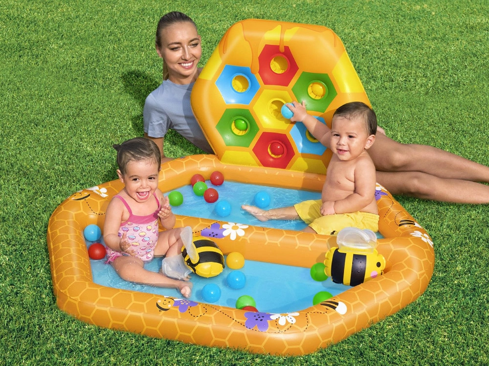 Bērnu rotaļu baseins BIŠU STROPS ir ideāla, prieka pilna vieta pašiem mazākajiem. Tas piedāvā drošu un stimulējošu vidi rotaļām gan ārā, gan telpās, pateicoties dizainam, kas iedvesmots no bišu stropa, un plastmasas bumbiņām.