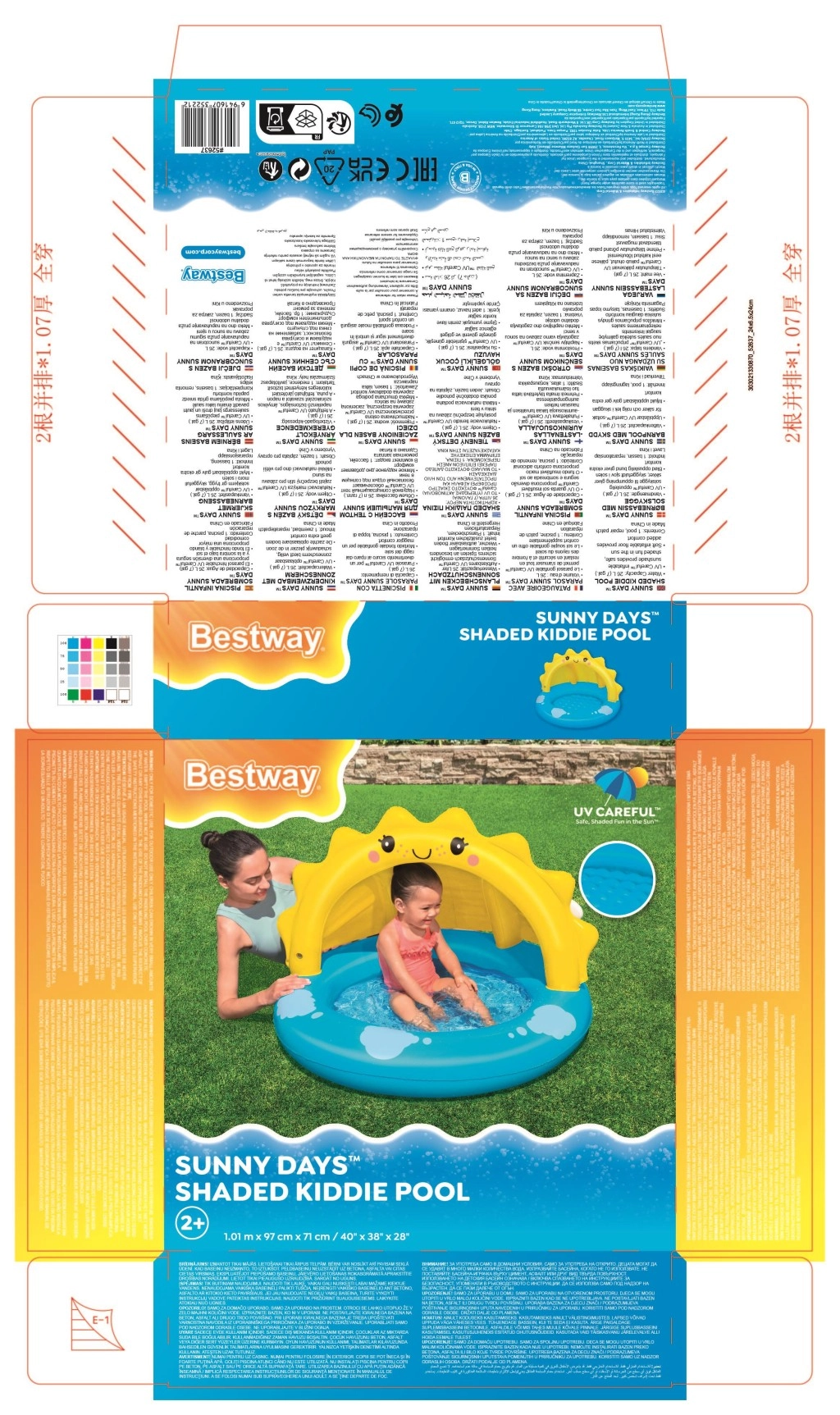 Burvīgs BESTWAY uzpūšamais bērnu baseins ar saulessargu nodrošina drošas ūdens izklaides bērniem pat karstā laikā. Pateicoties integrētajam UV jumtiņam, mīkstajai uzpūšamajai grīdai un dubultajām gaisa kamerām, tas ir ērts, stabils un pasargā no tiešiem saules stariem. Kompakts, viegli uzpūšams un piemērots arī mazākām telpām.