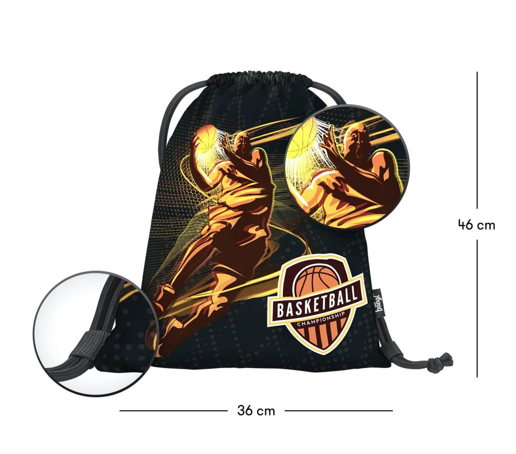 Viegls un izturīgs BAAGL maisiņš ar basketbola dizainu ir lieliska izvēle skolai, sporta zālei un pulciņiem. Mazgājams materiāls ir viegli kopjams un pasargā apavus un sīkas mantas ikdienas lietošanā.