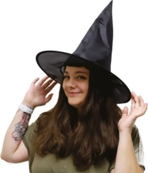 Izteikts smailums un plata mala piešķir jūsu tērpam autentisku raksturu. Melna tekstila cepure lieliski sader gan ar raganas, gan burvja kostīmu.