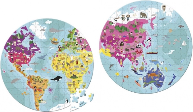 JANOD apaļā puzle Globuss ir skaisti ilustrēta un ideāli piemērota bērniem un pieaugušajiem, kuri mīl likt puzles un atklāt pasauli. Saliekot atsevišķus gabaliņus, bērni uzzina, kur pasaulē dzīvo dažādas dzīvnieku sugas, vienlaikus trenējot koncentrēšanos.