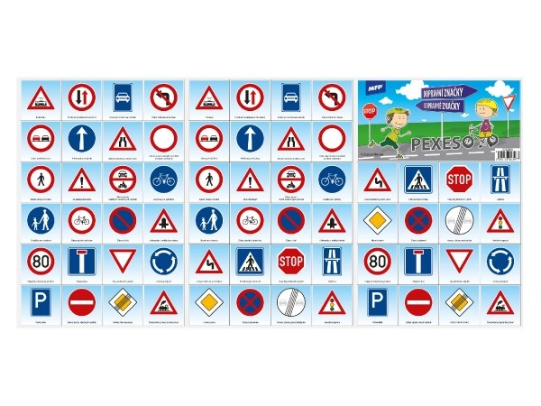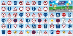 - 64 kartītes ar ceļu satiksmes zīmju attēliem