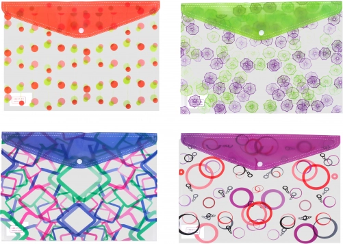 Praktiska mape ar spiedpogām, izmērs 35x25 cm, ideāli piemērota dokumentu un papīru kārtošanai un glabāšanai. Pieejama četros dažādos motīvos.