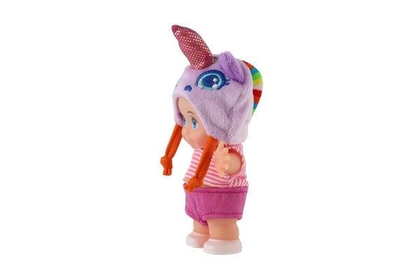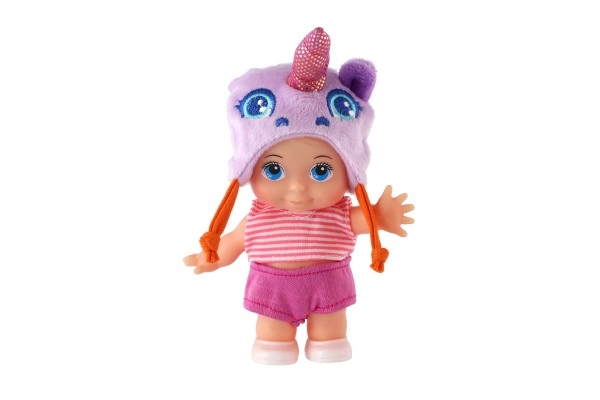 Šī mazā panenīte ar lielām acīm un jautru sejas izteiksmi ir lieliska pavadone ikdienas rotaļām. Stingrais plastmasas ķermenītis labi saglabā formu, kustīgās rokas plecos ļauj viegli pozēt un pārģērbt. Krāsainā dzīvnieciņa cepurīte piešķir panenītei unikālu stilu un iedvesmo stāstu veidošanu.