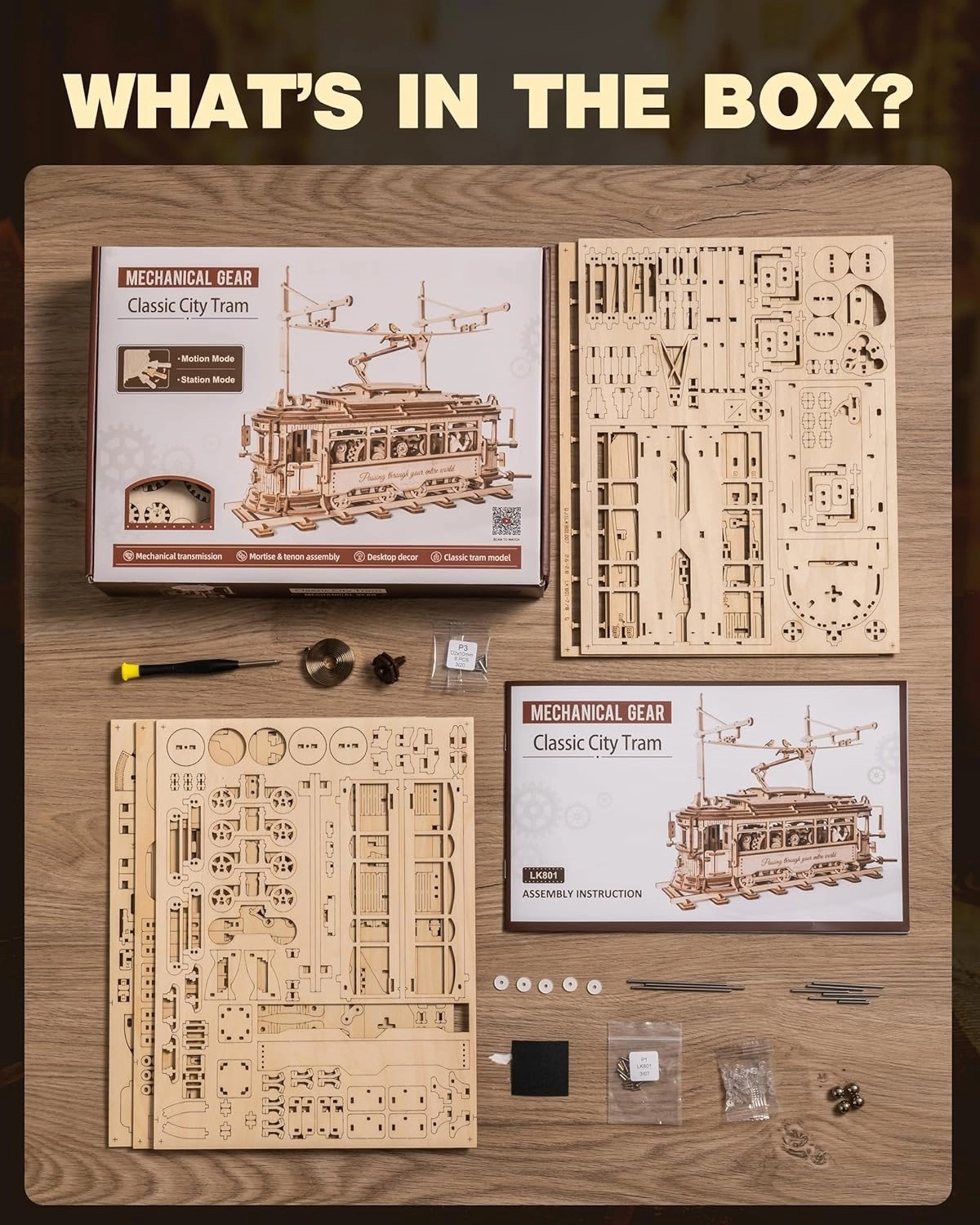 Sagatavojieties unikālai pieredzei, veidojot mūsu koka tramvaju, kas atgādina pirmos pilsētu tramvajus no 19. gadsimta. Šis modelis ir rūpīgi izstrādāts, lai atdarinātu vēsturisko šarmu un tehnisko sarežģītību, un ir ideāli piemērots gan dekoratīviem, gan izglītojošiem nolūkiem.