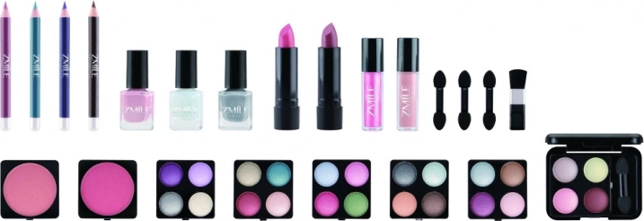 Komplektā ietilpst 24 acu ēnu toņi dienas un vakara grimiem, 2 klasiskās nagu lakas un 1 mirdzošā laka, vaigu sārtums, 2 lūpukrāsas, 2 lūpu spīdumi, 4 acu zīmuļi, 3 divpusēji aplikatori un 1 otiņa. Viss ir dermatoloģiski testēts un atbilst ES normām, lai varētu baudīt skaistumu ar drošības sajūtu.