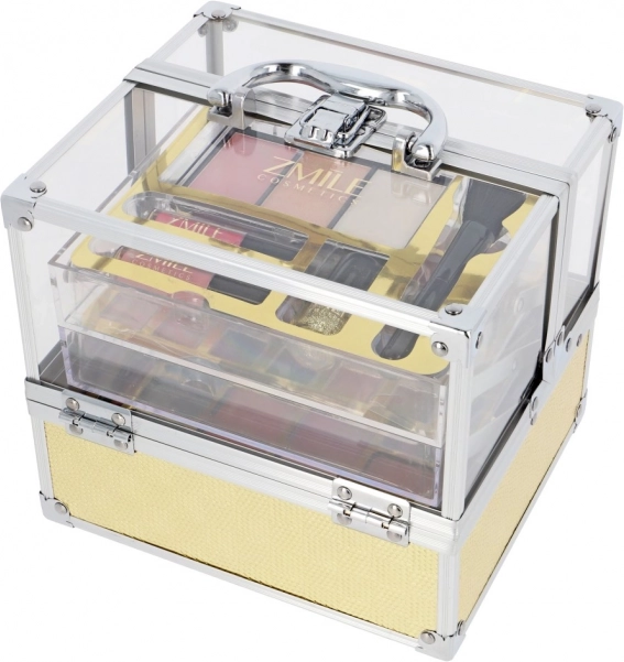 Elegantais kosmētikas koferītis greznā zelta izpildījumā piedāvā visu nepieciešamo ikdienas grimam un īpašiem notikumiem. Komplektā kopā ir 64 piederumu vienības, plaša acu ēnu, lūpu krāsu un grimēšanas otu izvēle. Kompaktais akrila izpildījums ir izturīgs un pārskatāms. Produkts ir dermatoloģiski testēts un atbilst stingriem ES standartiem.