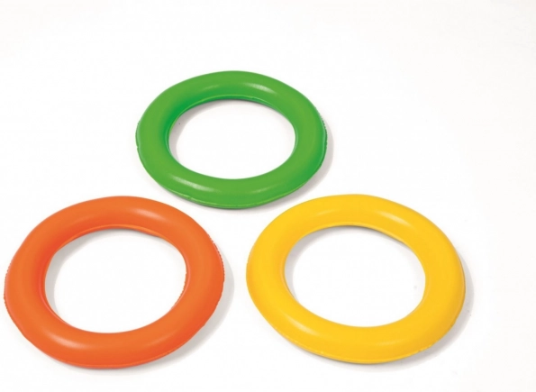Komplektā ietilpst trīs piepūšami riņķi un sānu āķi jautrai prasmju spēlei, kas attīsta koordināciju.