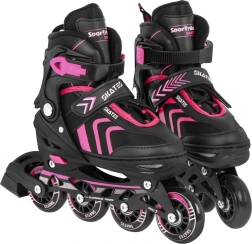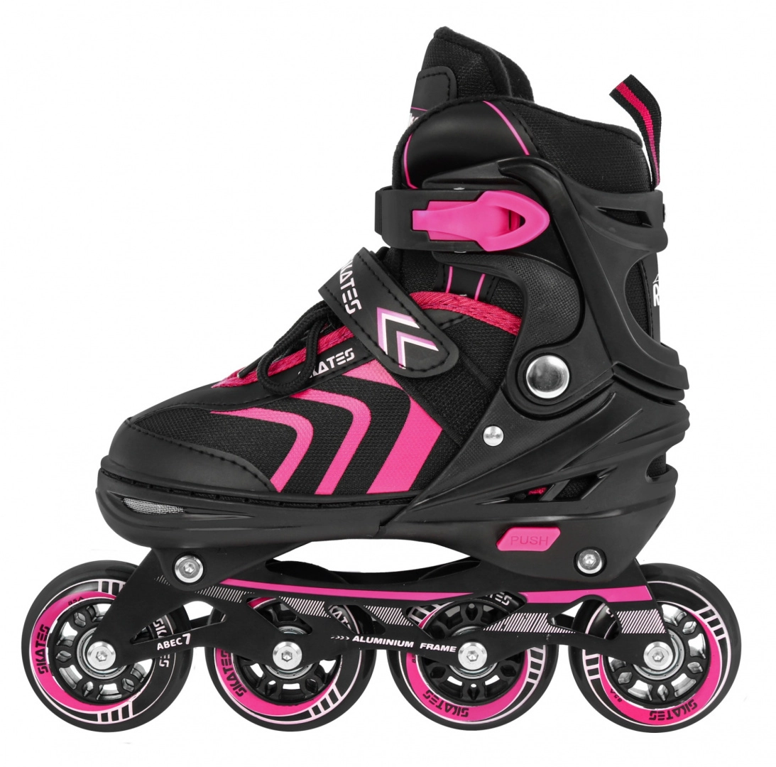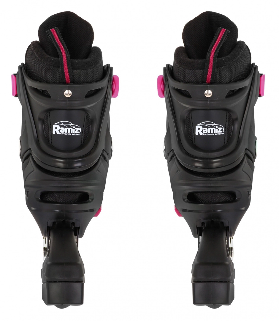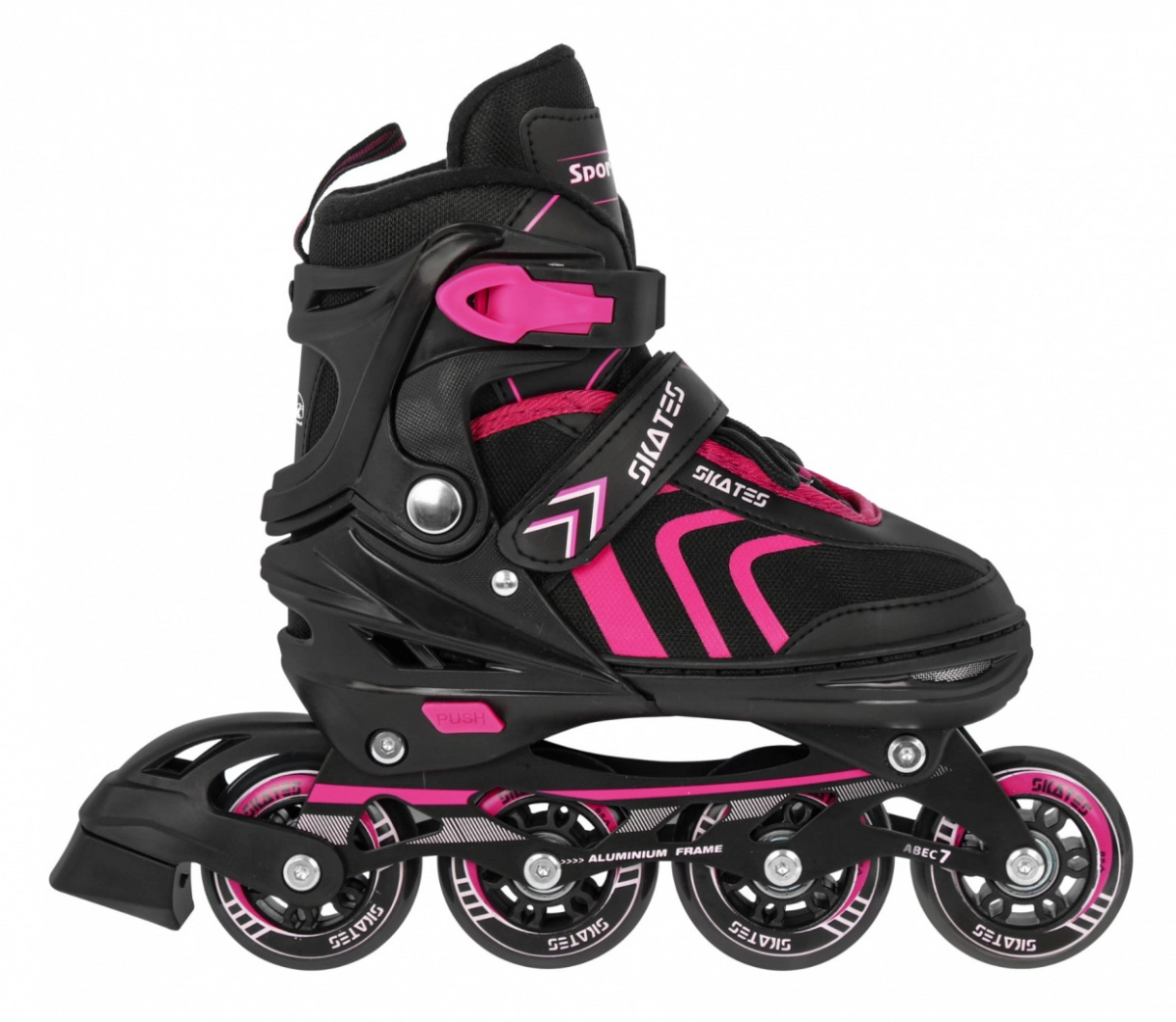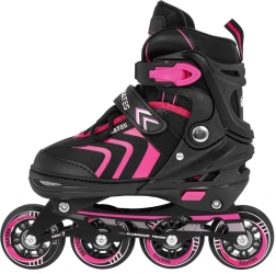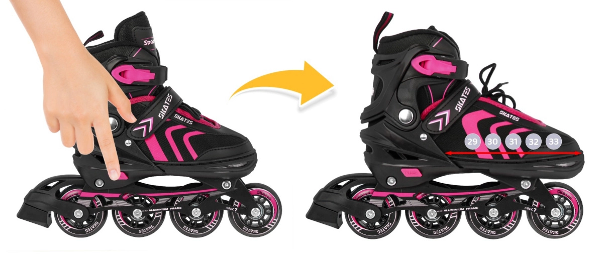 Universāls bērnu 4‑vienā komplekts apvieno inline skrituļslidas, četrriteņu skrituļslidas un ledus slidas vienā. Pateicoties 5 pakāpju izmēra regulācijai 29–33, ērtajam mīkstās EVA putu polsterējumam, ventilācijai un drošai aizdarei ar šņorēm + līplentes siksnu + sprādzi, komplekts nodrošina drošību un komfortu. Alumīnija rāmis, ABEC 7 gultņi un 64 mm (85A) PU ritenīši garantē vienmērīgu slīdējumu, bet nerūsējošā tērauda asmens – pārliecību uz ledus.