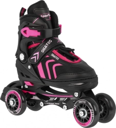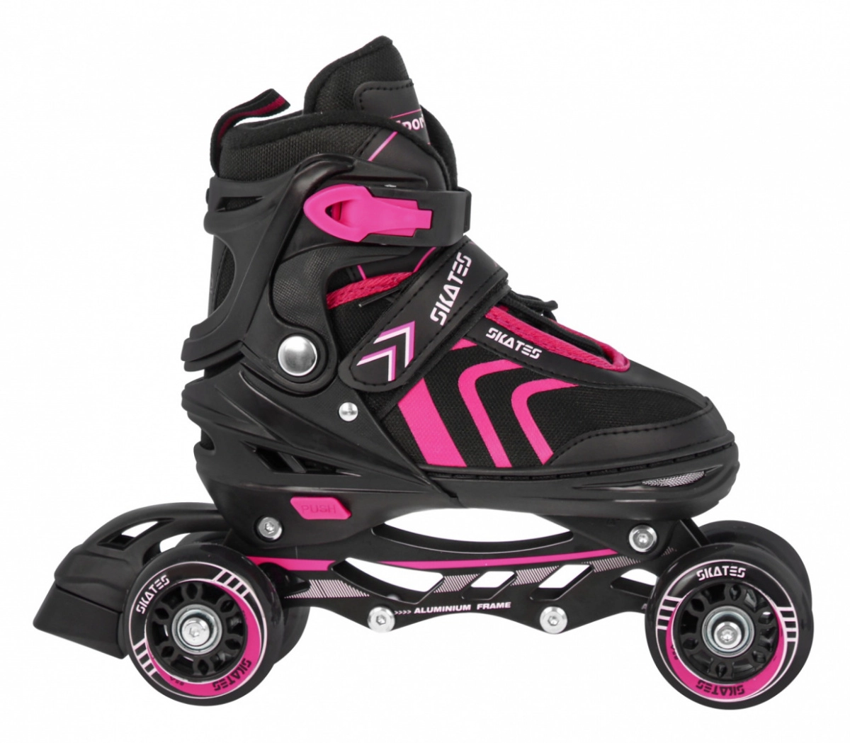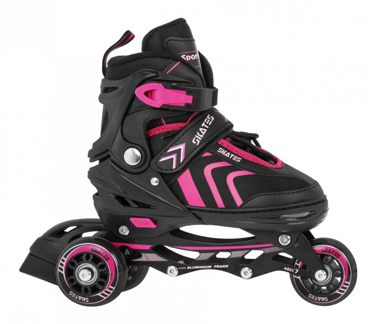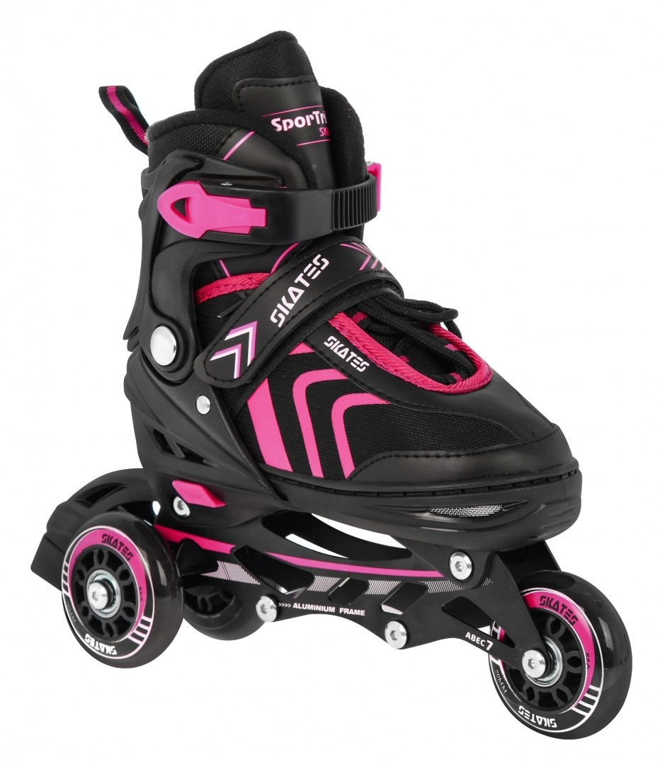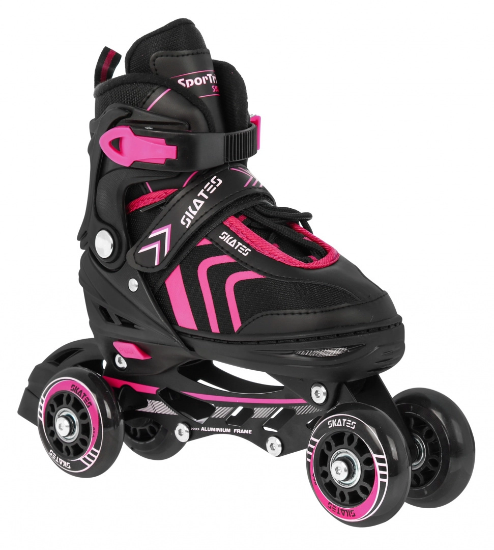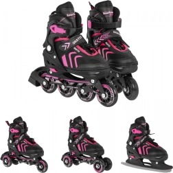 - 4‑vienā komplekts: inline skrituļslidas, četrriteņu skrituļslidas, ledus slidas