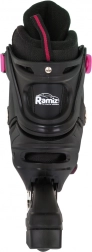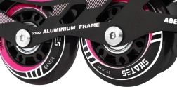 Komfortu nodrošina profilēta ieliktnīte ar mīkstām EVA putām, kas pārklātas ar patīkamu Velvet audumu. Trīskāršā aizdare – šņores, līplentes siksna un drošības sprādze – stingri un uzticami notur kāju. Alumīnija rāmja daļa ritenīšiem, PU riteņi 64×24 mm ar cietību 85A un ABEC 7 gultņi sniedz gludu un stabilu braucienu. Ledus asmeņi no nerūsējošā tērauda ir viegli kopjami un nodrošina lielisku slīdējumu.