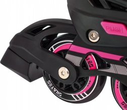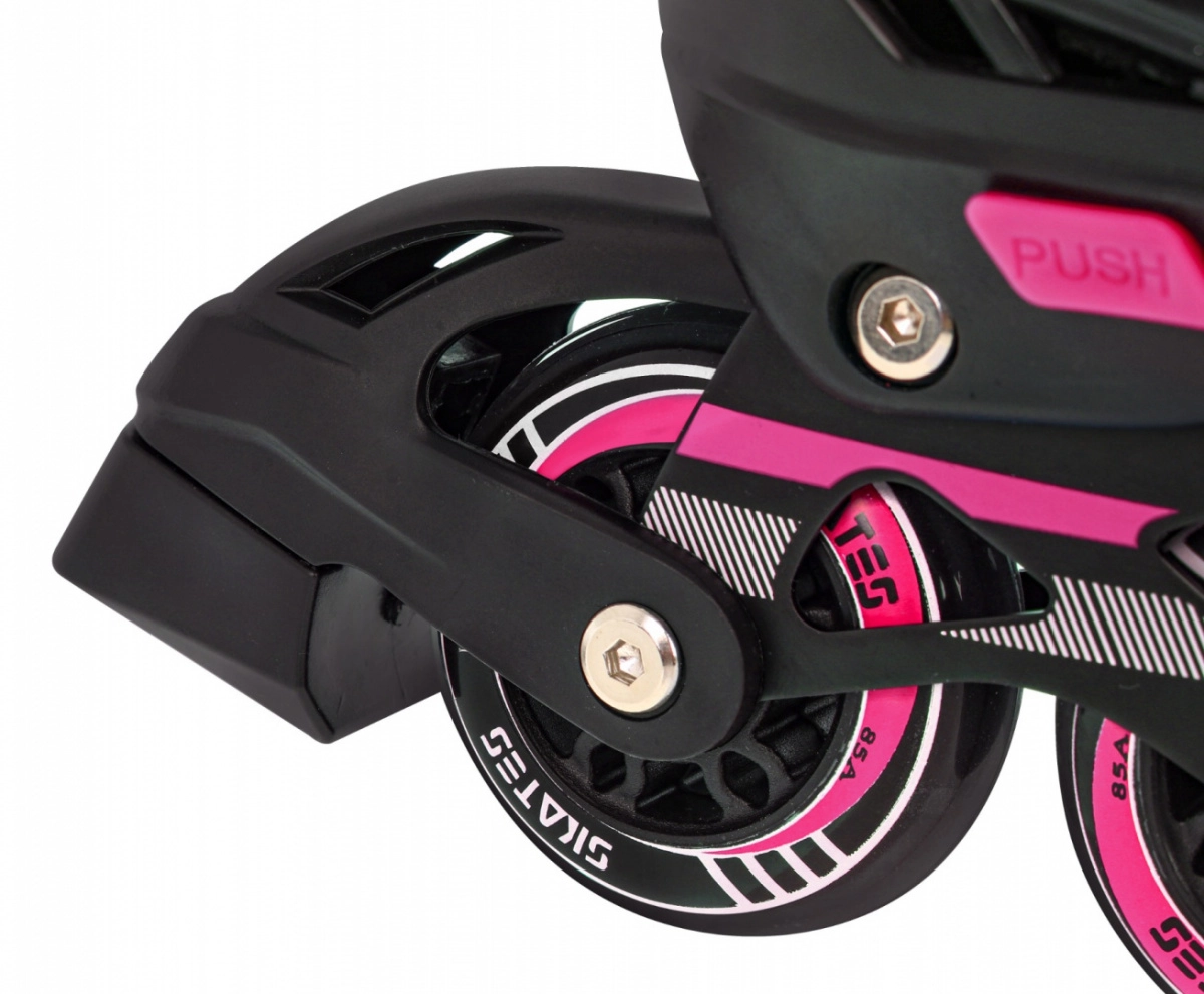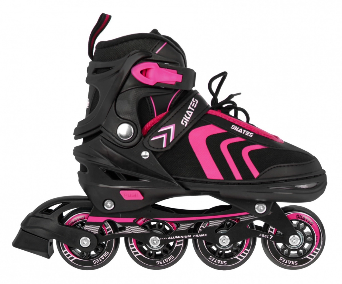 - Drošība un stabilitāte: pusciets zābaks, trīskārša aizdare, bremze uz labās inline slidas.