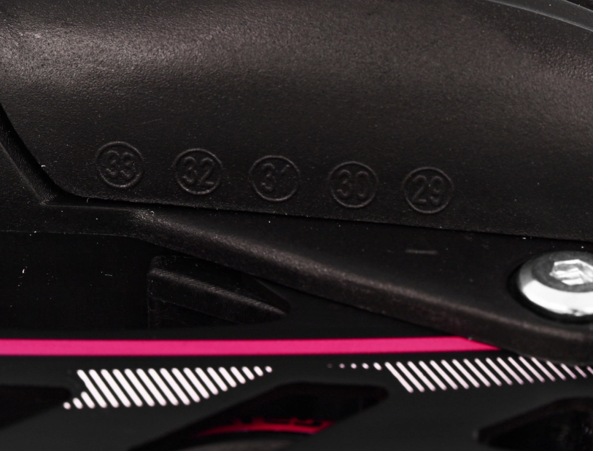 Vienkārša izmēra regulēšana ar pogu aptver pēdas garumu 16,5–20 cm, tāpēc slidas kalpos vairākas sezonas.