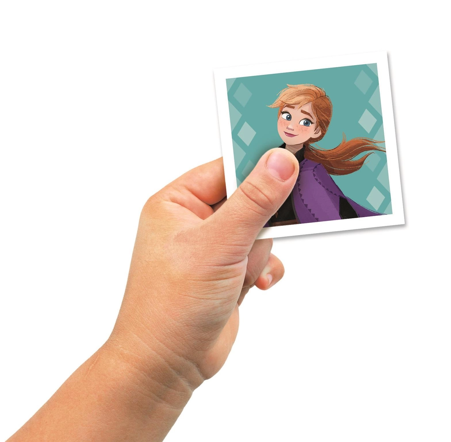 Kartītes rotā Elza, Anna un Olafs, kurus bērni uzreiz atpazīs, padarot spēli vēl aizraujošāku.