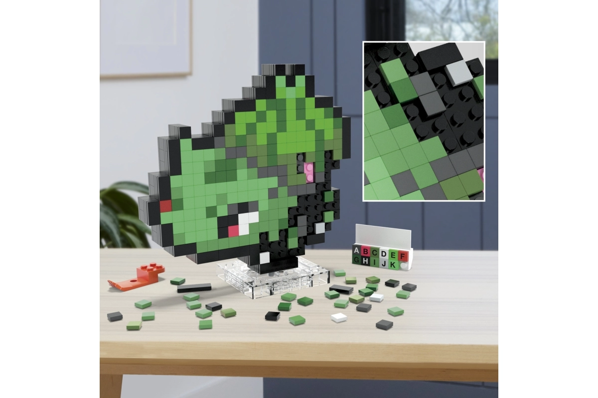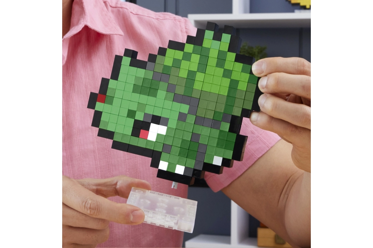 Izbaudi aizraujošu salikšanu un unikālu 8 bitu estētiku. Pikseļu klucīši uzticīgi ataino iemīļotā Pokémona BULBASAUR formu un krāsas, veidojot piesaistošu retro izskatu, kas izcelsies plauktā, uz rakstāmgalda vai vitrīnā.