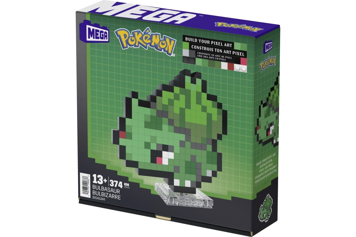 Saliec ikonisko Bulbasaur retro stilā un izrotā savu telpu ar oriģinālu pikseļu figūriņu. No oficiāli licencētā MEGA konstruktora izveidosi detalizētu modeli, kas iedvesmots no Pokémon Pixel Art, ko var izstādīt uz statīva vai piekarināt pie sienas. Ideāli kolekcionāriem un pieaugušajiem būvētājiem, kuri meklē stilīgu dekoru ar nostalgijas noskaņu.