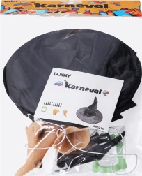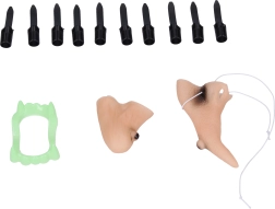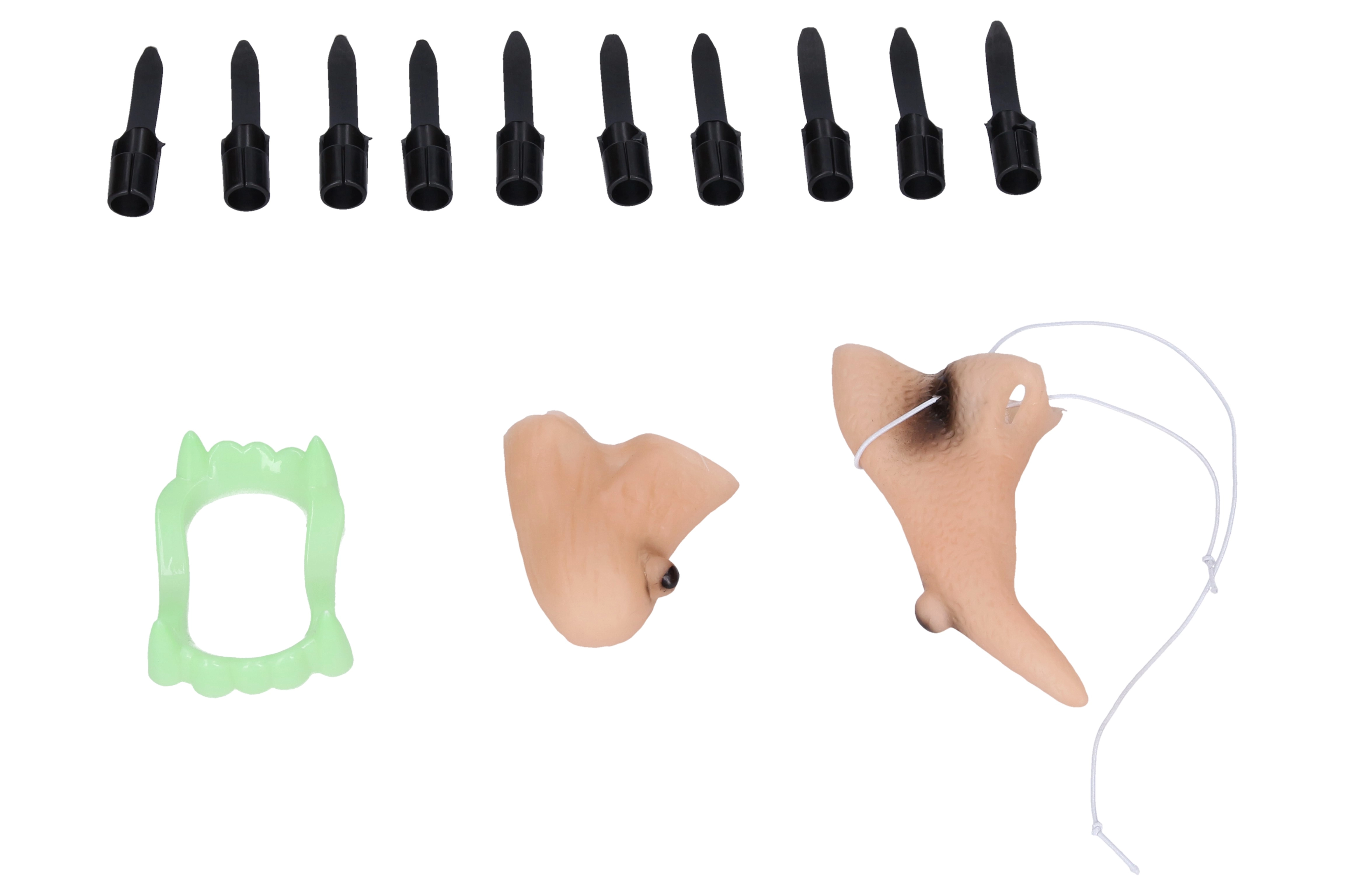 Iepakojumā atradīsiet visu nepieciešamo, lai izveidotu izteiksmīgu un jautru kostīmu: sākot ar ikonisko raganas cepuri līdz pat degunam un zodam uz gumijas, ko papildina detalizēti pirksti ar gariem nagiem un baisi zobi. Rezultātā iegūsiet efektīgu tēlu, kas piesaista uzmanību no pirmā acu skatiena.