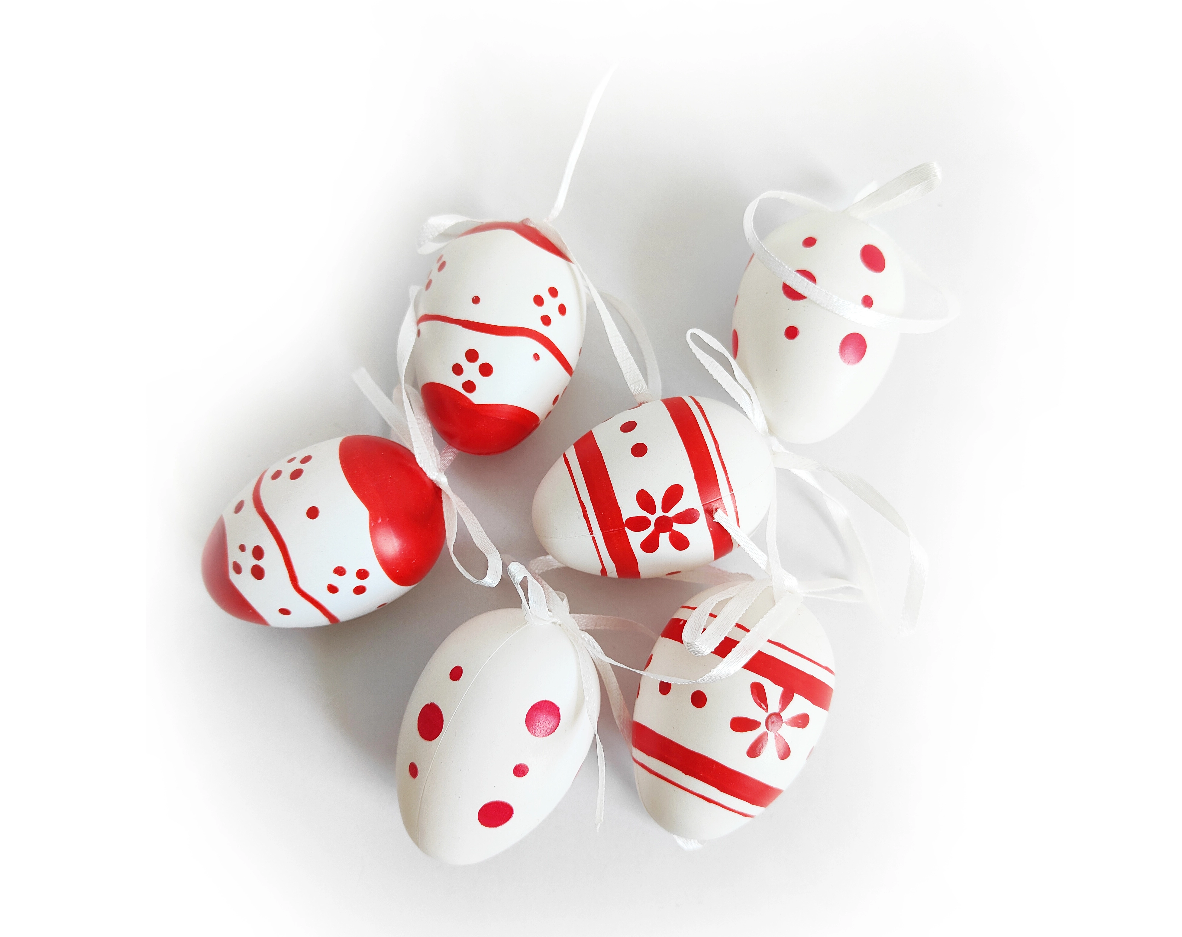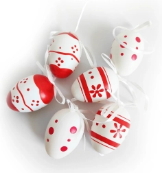 Šīs skaistās plastmasas olas piešķir jūsu mājām patīkamu svētku noskaņu. Tās ir rūpīgi apgleznotas, lai uzticami atveidotu tradicionālas dekoratīvās olas. Priekšrocības: