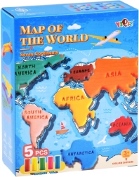 Šis mākslinieciskais komplekts ir ideāli piemērots bērniem, kuri mīl radošas aktivitātes. Tas attīsta roku veiklību, iztēli un radošumu. Komplekts ļauj ne tikai veidot kontinentu formas, bet arī apgūt to nosaukumus angļu valodā un paplašināt savas ģeogrāfijas zināšanas.