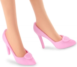 Pasteļtoņu papēži ar sirsniņām papildina tērpu un izceļ lelles modes raksturu.