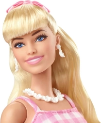 Šī BARBIE filmas lelle izceļas ar laikmetīgu stilu un rūpīgu izpildījumu. Viņai ir gari blondi mati, sasieti ar rozā lenti, ko lieliski papildina margrietiņu auskari un kaklarota. Rozā-baltā rūtainā vintage stila kleita ar plisētu svārku un jostu, bet rozā laiviņkurpes ar papēžiem piešķir tērpam šarmu.