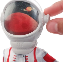 Detalizēts astronautes tērps ar apdrukātiem elementiem, sudraba cimdiem un melniem zābakiem papildināts ar ķiveri ar caurspīdīgu vizieri autentiskiem kosmosa stāstiem.