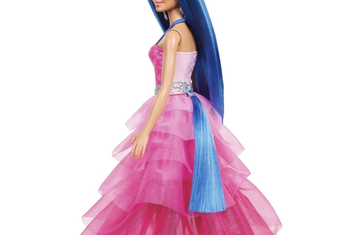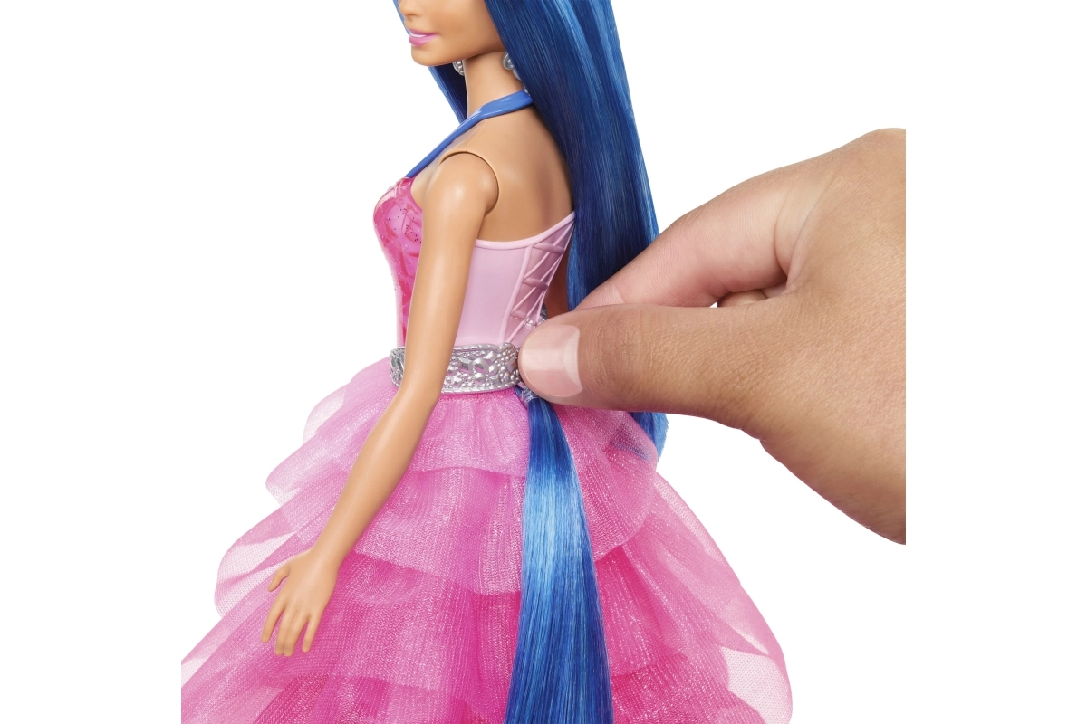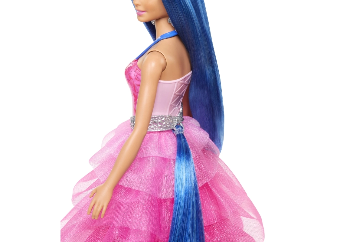 - Burvīgs dizains – slāņaina rozā kleita, mirdzoša josta un gari zilie mati.