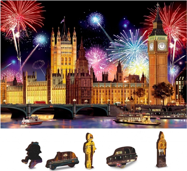Atnesiet mājās daļiņu Londonas ar aizraujošo koka puzli Nakts Londona 2 vienā. Šajā puzlē ir kopā 150 gabaliņu, no kuriem 30 ir unikālas formas, attēlojot ikoniskas celtnes un Lielbritānijas galvaspilsētas simbolus. Likšanas laikā sagatavojieties augstākai grūtības pakāpei pateicoties daudzveidīgajām gabaliņu formām, kas ir izaicinājums pat pieredzējušiem pužļu licējiem.