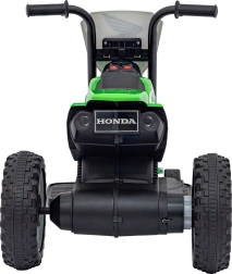 Šis bērnu elektriskais motocikls ir lieliska izvēle mazajiem braucējiem. Trīs platie riteņi nodrošina stabilu un drošāku braukšanu, gumijas protektors – labāku saķeri un klusāku darbību. Reālistiskas HONDA stila detaļas veicina iztēli un braukšanas prieku.
