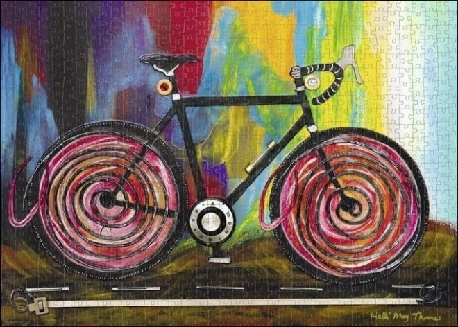 Atklājiet mūsdienu mākslas pasauli ar velosipēda motīvu, kas nav tikai pārvietošanās līdzeklis, bet arī brīvības, fiziskās formas un ilgtspējas simbols. Puzle Heye Bike Art: Momentum piedāvā izteiksmīgu kompozīciju un košas krāsas, kas izcelsies jebkurā interjerā. Pēc salikšanas veidojas iespaidīgs attēls ar izmēriem aptuveni 70 × 50 cm, ideāli piemērots izvietošanai pie sienas.