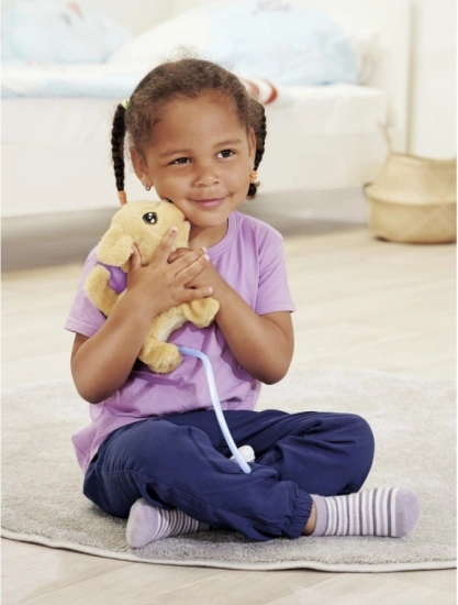 Unikāls elements ir izgaismota pavada, kas iedegas, turot nospiestu pogu – lieliski piemērota drošai un jautrai spēlei arī sliktākos gaismas apstākļos. Rotaļlieta attīsta iztēli, lomu spēles un sīko motoriku, nodrošinot stundām ilgu interaktīvu izklaidi.