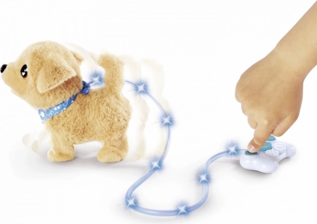 Vadu pults kauliņa formā labi ieguļ bērna rokā un vienkārši aktivizē staigāšanu, rējienu un astes kustināšanu.