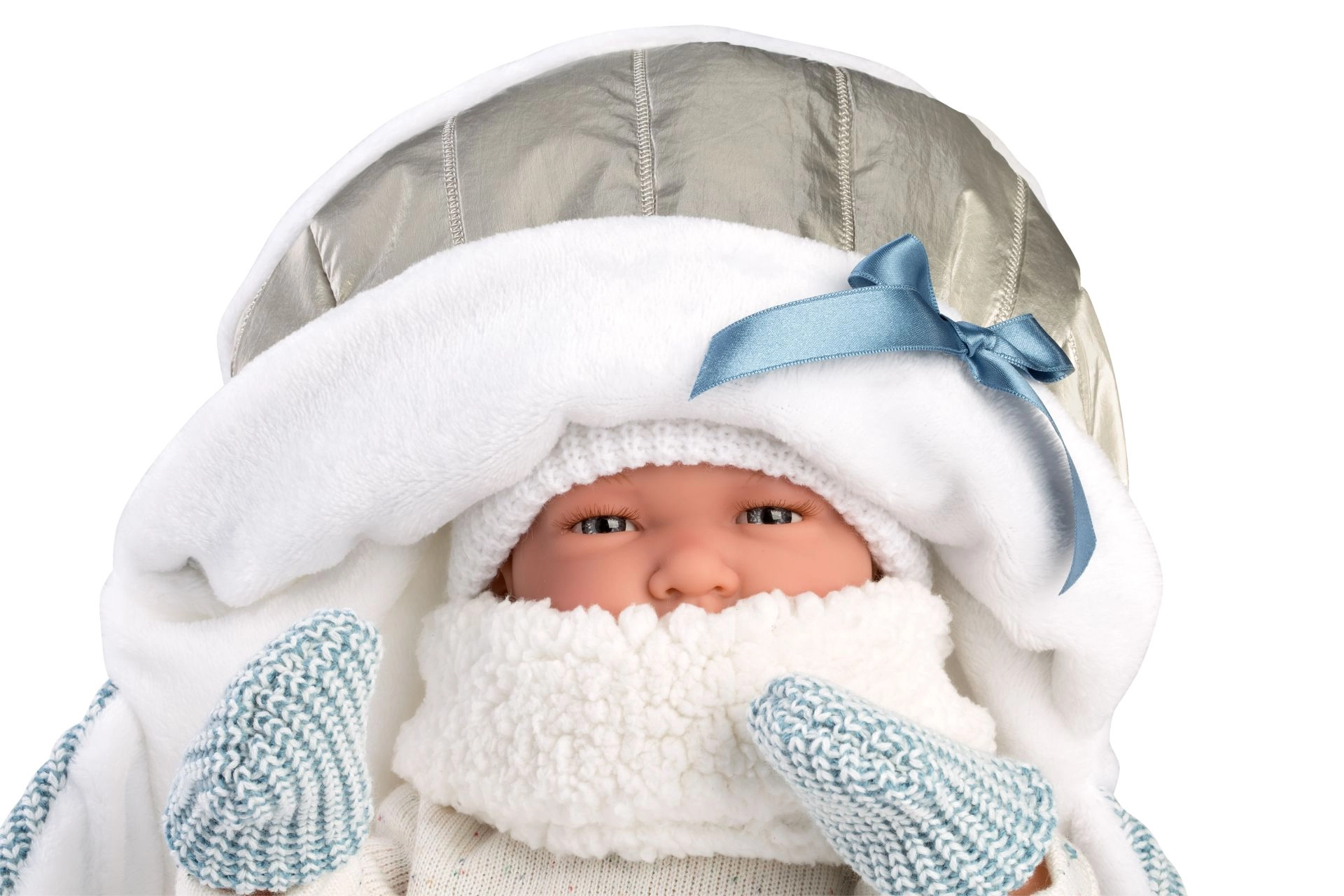 Novietojiet lelli ērti un ņemiet līdzi – mīkstais paliktnis ar kapuci un praktiskām siksnām pasargā un atvieglo pārnešanu.