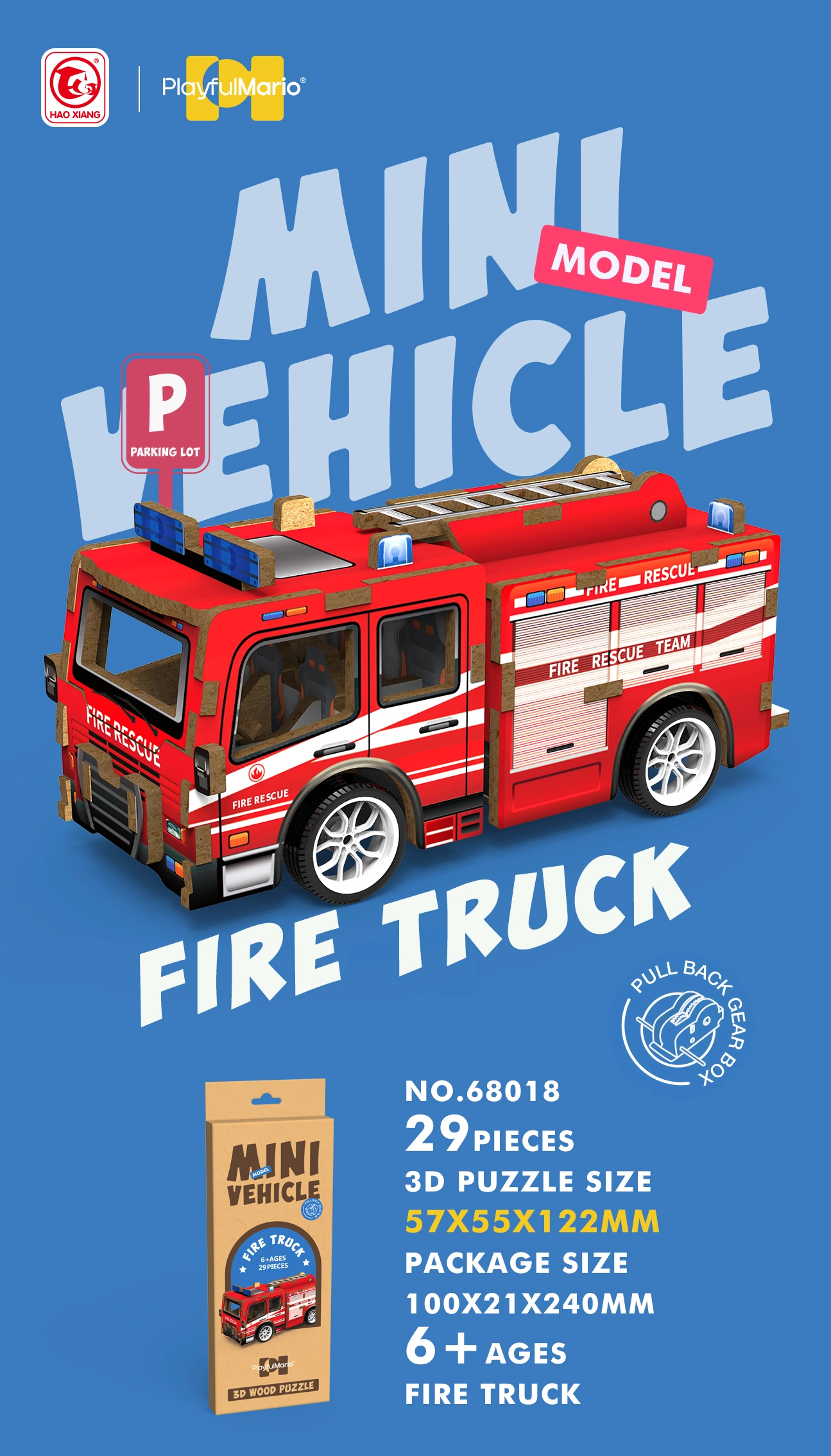 Šis koka 3D puzles komplekts Ugunsdzēsēju auto ne tikai ļauj to salikt, bet arī spēlēties ar kustīgu modeli. Vienkārši uztiniet ar atpakaļvilkšanas kustību un ļaujiet tam braukt.