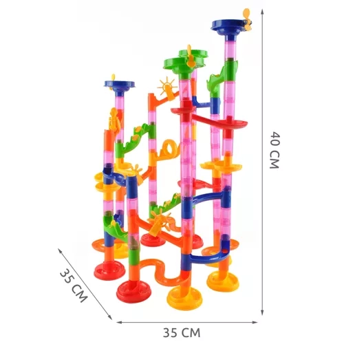 Spēle ar trasi attīsta loģisko domāšanu, izpratni par cēloņiem un sekām un pamatprincipiem gravitācijai un ātrumam. Bērni vēro bumbiņu kustību, testē dažādus izkārtojumus un vienlaikus stiprina pacietību, radošumu un sīko motoriku.