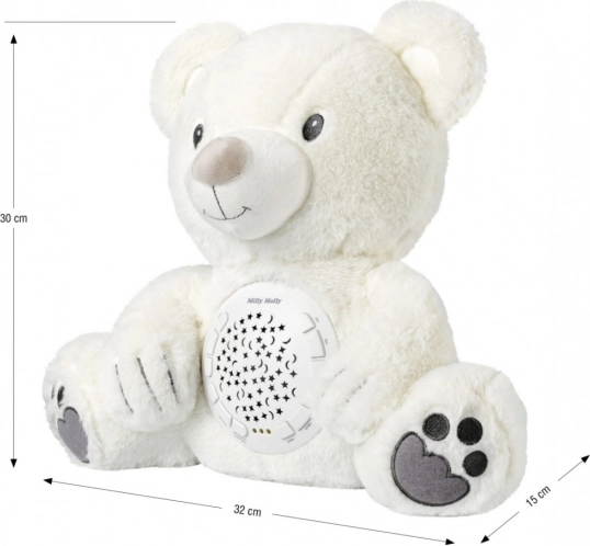 Pūķaina rotaļlieta ar projektoru Milly ir ideāls palīgs vecākiem bērnu nomierināšanai un iemidzināšanai. Ieslēdzot projektoru, nejauši tiek izvēlēta viena no 10 šūpuļdziesmu melodijām, kamēr tiek projicētas nakts debesis.