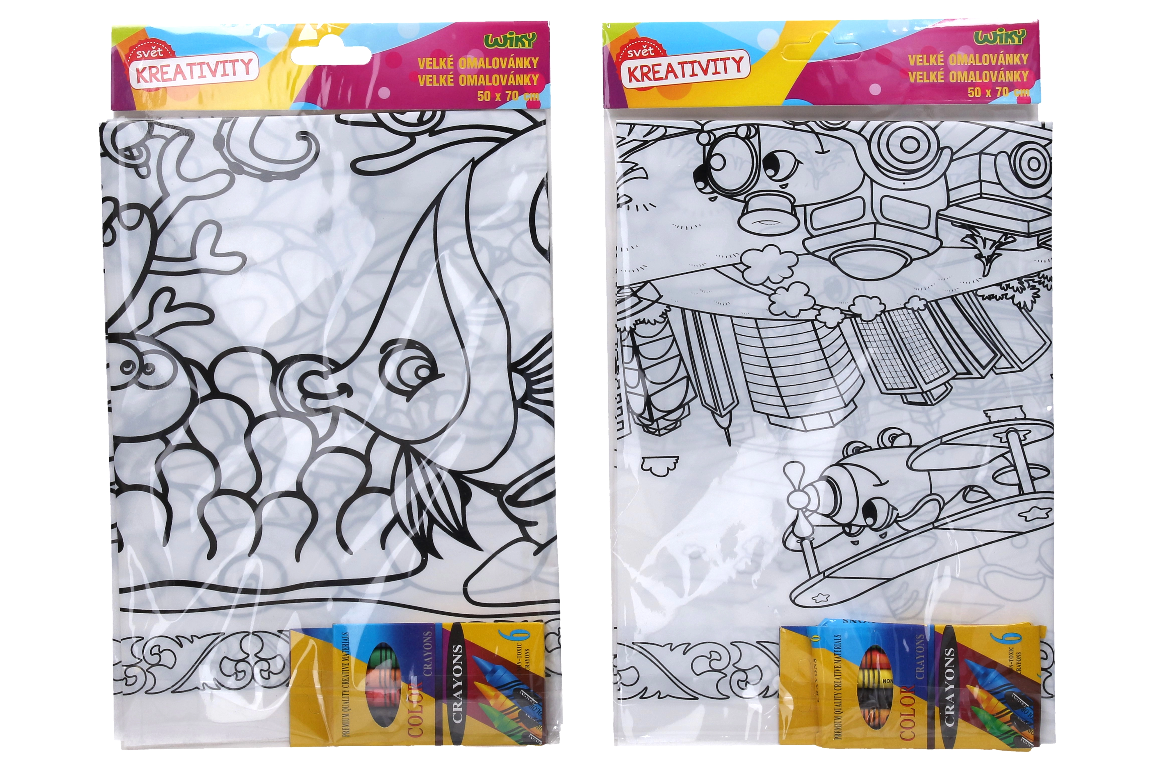 Lielais 50 × 70 cm formāts nodrošina daudz vietas krāsošanai, kopīgai radīšanai un gatavo darbu izstādīšanai uz sienas. Iepakojumā ir iekļauts komplekts ar 6 kvalitatīviem vaska krītiņiem, lai bērni varētu sākt radīt uzreiz pēc atvēršanas.