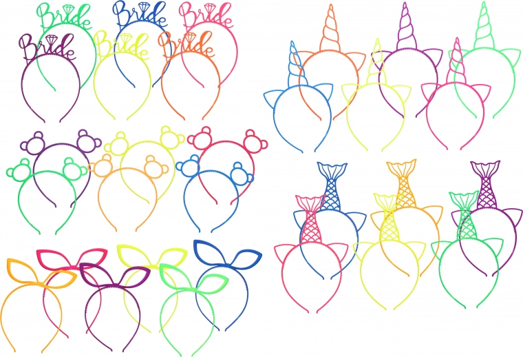 Padariet savu tērpu košāku ar šo universālo karnevāla matu stīpiņu dažādu krāsu miksā. Pieejami pieci rotājumu veidi – vienradzis, kronītis, dzīvnieku ausis, trusis un zivs – katrs pieejams zilā, zaļā, oranžā, dzeltenā un rozā krāsā. Lieliska izvēle gan bērniem, gan pieaugušajiem svinībām, masku ballēm un tematiskiem pasākumiem.